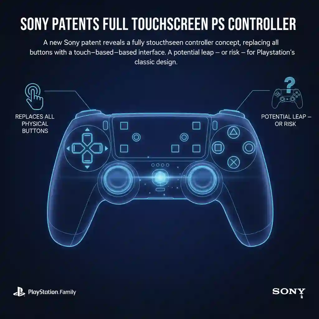 A new Sony patent reveals a fully touchscreen controller concept, replacing all physical buttons with a touch-based interface.